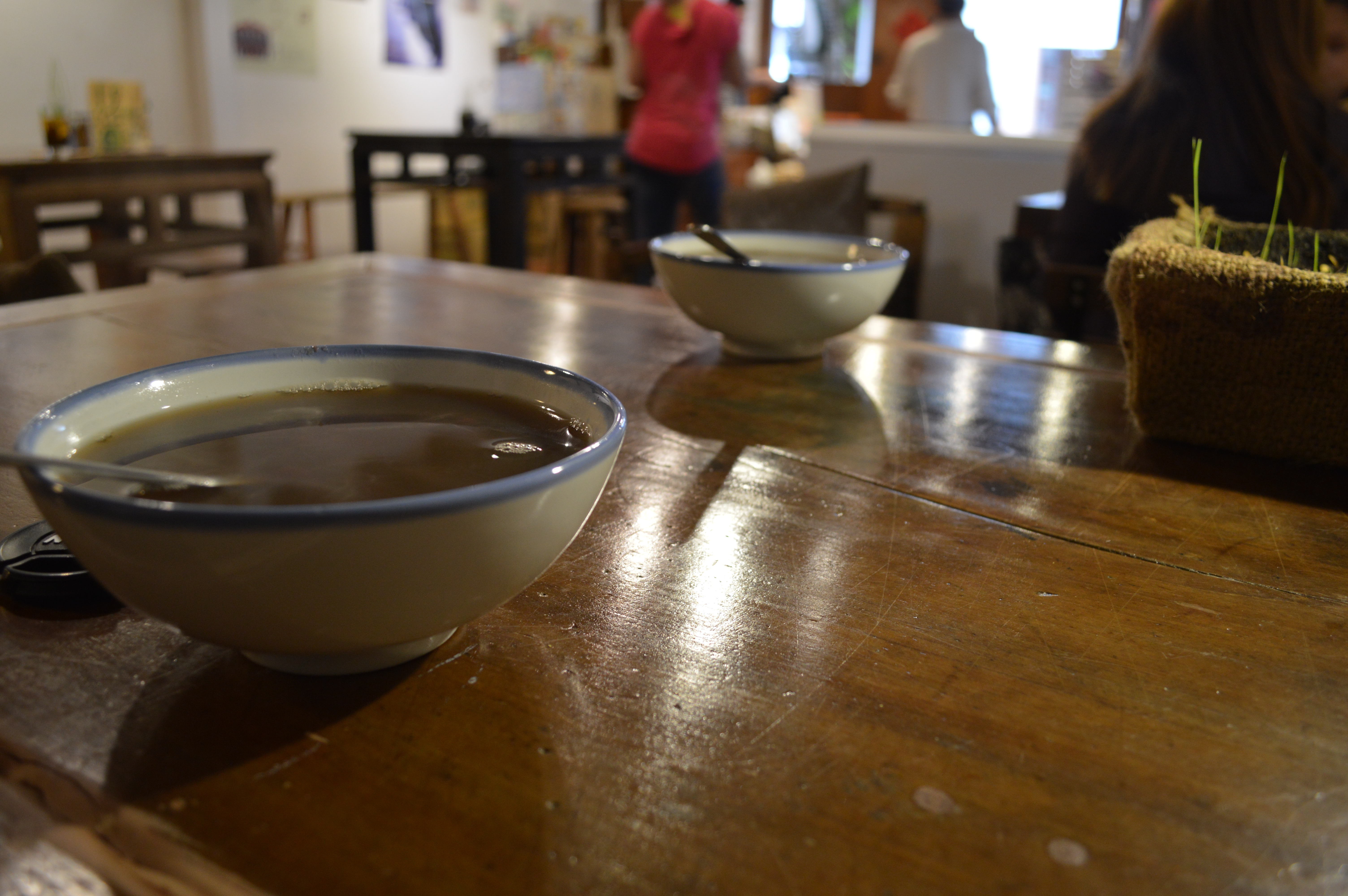 Qui a Dadaocheng ho assaggiato una zuppa di fagioli rossi dolci cucinata in un vecchio forno a pietra taiwanese, costituito da un cubo di mattoni e coperto da un coperchio di legno. Questo genere di forni viene mantenuto sempre acceso, di modo che la brace possa tenere calda la zuppa.