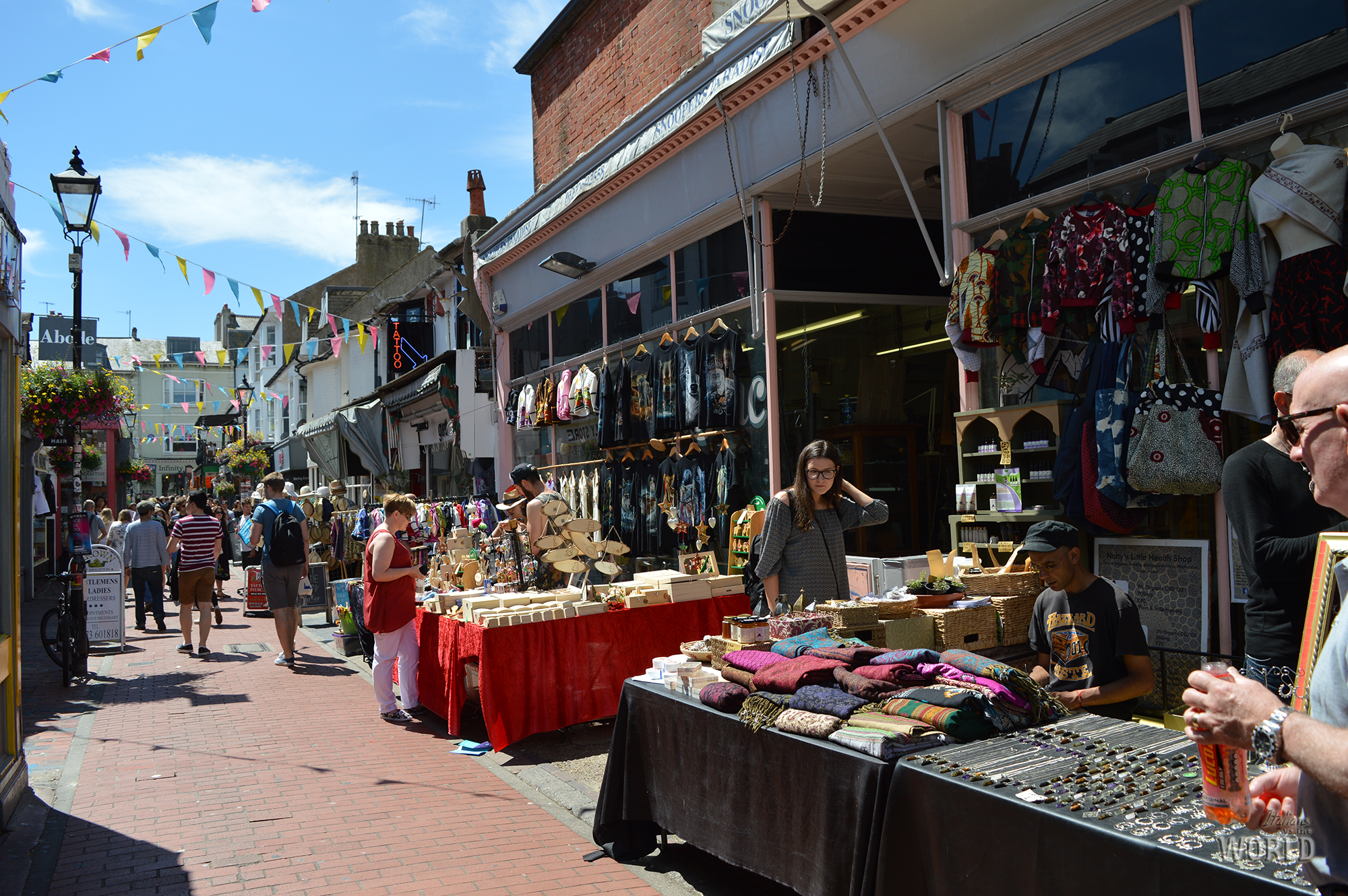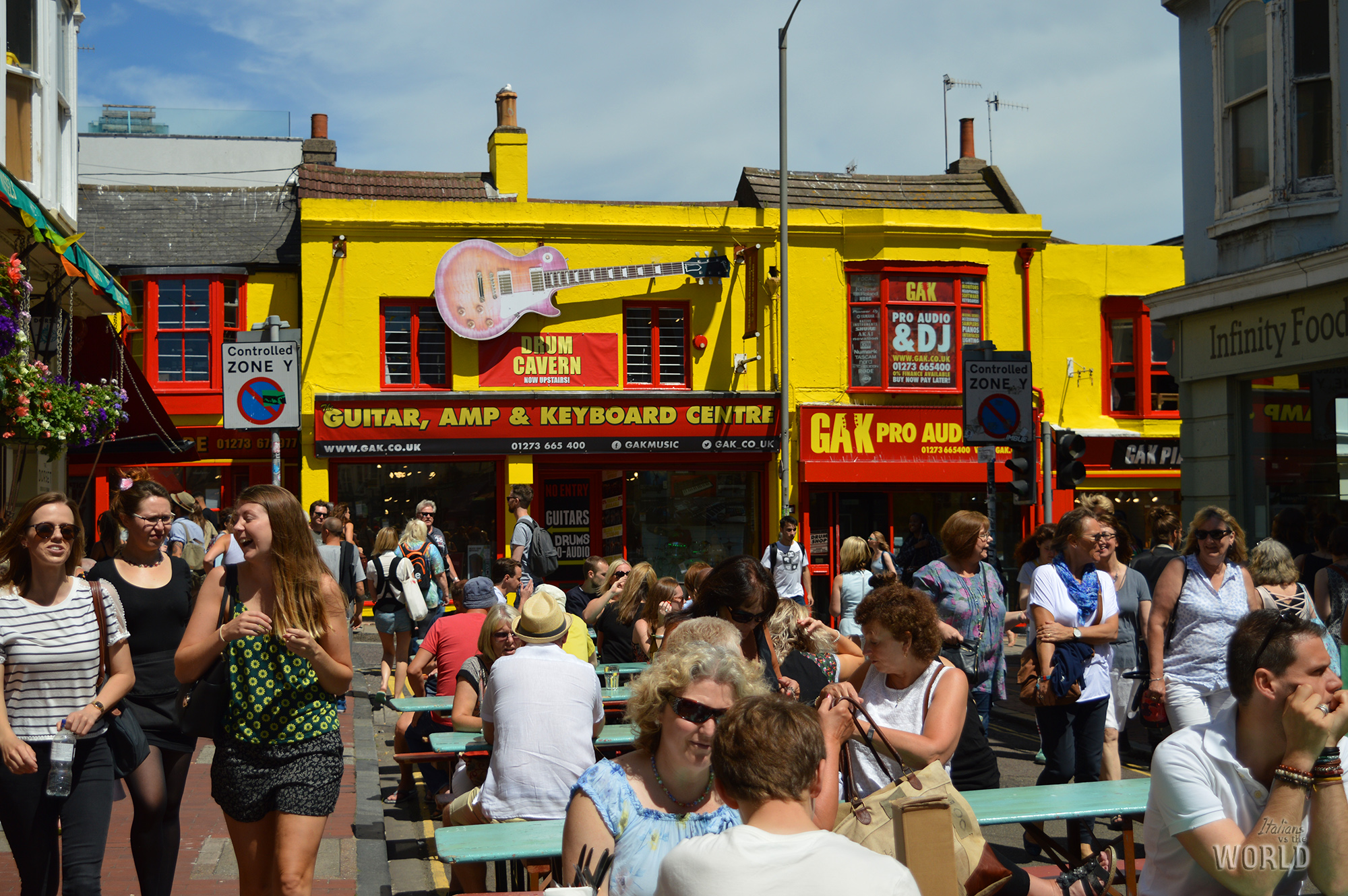 Tanto per cominciare, a differenza delle altre due città di cui ho parlato precedentemente, a Brighton si respira immediatamente un clima giovanissimo, molto alla Camden Town! Ne è un esempio chiarissimo Gardner Street, dove le sculture pop sulle insegne dei negozi e le bandierine da festival danno subito un’aria allegra che fa immediatamente Camden. Il posto ideale per sedersi a mangiare qualcosa, in uno degli innumerevoli locali, persino a buon prezzo.