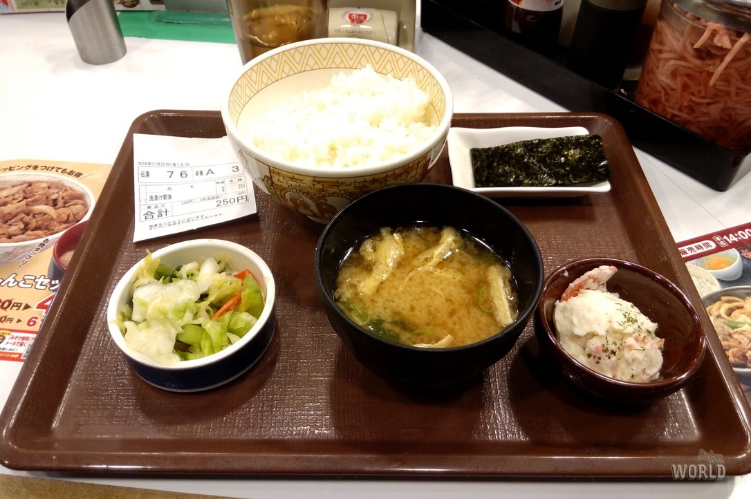 Riguardo al non mangiare carne, non preoccuparti, ad esempio puoi trovare yakisoba con solo carote, cipolle e cavolo, o se vuoi un okonomiyaki puoi chiedere di togliere la carne e lo fanno senza problemi (visto con i miei occhi mentre ero in fila per il mio). Nei Convenient Restaurant spesso ci sono alternative vegetariane o vegane, ad esempio per la colazione tradizionale ho preso un set vegetariano perché il pesce a colazione non è che mi ispirasse moltissimo!! Insomma, c’è sempre una buona serie di alternative! ;D
