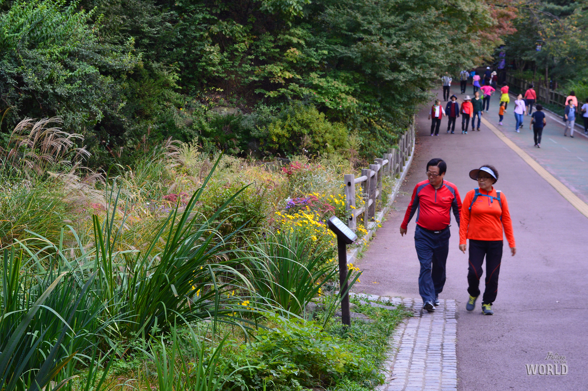 Se abbiamo parlato dei giovani passiamo al mondo degli anziani. Alla fine del mio soggiorno mi sono detta “al diavolo tutti, quando sarò vecchia voglio vivere in Corea!”. Perché qui è…un paese per vecchi. Non fraintendetemi, è un paese che offre tantissimo ai giovani. Ma la cosa davvero caratteristica secondo me non sono loro, ma le coloratissime ajumma! L’ajumma (traducibile con “signora”) per eccellenza indossa scarpe da ginnastica stringate, pantaloni floreali e giubbotto catarifrangente di colori stravaganti (immancabile l’arancione, il rosso, il giallo evidenziatore e il viola). Capelli neri rigorosamente fissati in una fitta permanente e visiera completano il quadro! Le ajumma girano in gruppo, fanno escursioni in montagna, ginnastica nei parchi, o passeggiano a zonzo per la città. Per contro gli ajoshi (i signori), meno colorati, ma altrettanto sportivi, siedono nei parchi accompagnati da bicchieri di makgolli. Riassunto: o vecchio o giovane qui si beve SEMPRE.