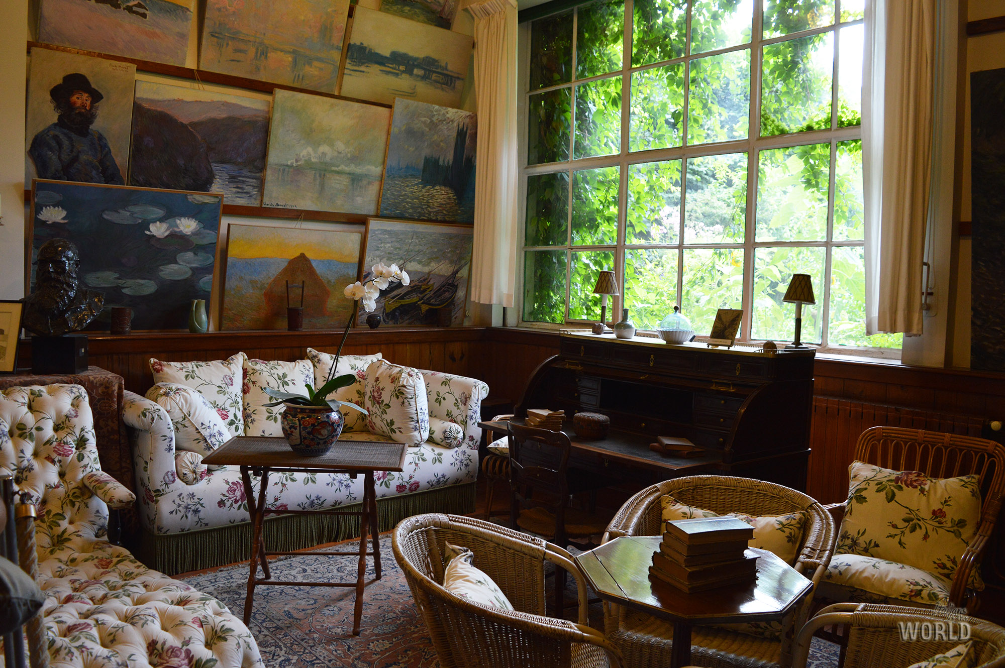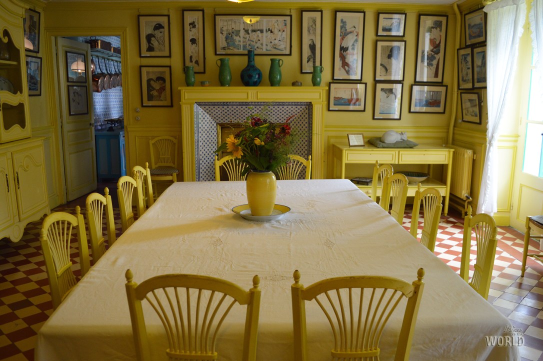 La casa poi, con le stampe giapponesi appese dappertutto e il grande salone-atelier con la gigantesca finestra direttamente sul giardino, che filtra nel verde intenso la luce. Capisco come potesse essere ispirato da un luogo del genere, fatto di colori e odori, pieno di particolari che stimolano i sensi e che non è possibile cogliere ad un colpo d’occhio. Te ne resta solo l’impressione, appunto.