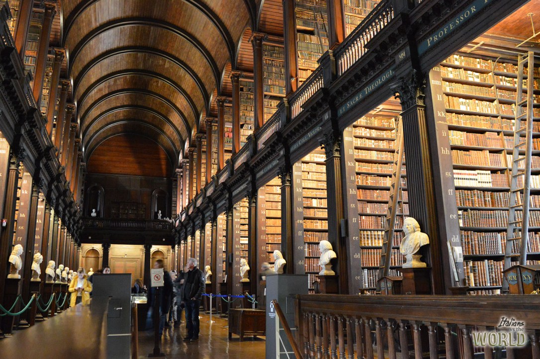 Incluso nel biglietto anche il piccolo museo che spiega pagina per pagina, o quasi, il Libro di Kells, manoscritto medievale in latino dei quattro vangeli del Nuovo Testamento, risalente all’800 d.C. e sfortunatamente sostituito da una copia durante la nostra visita causa manutenzione. E dunque ritorniamo al cuore della Old Library questa meravigliosa sala costruita nel XVIII secolo, chiamata the Long Room e contenente oltre 200.000 antichissimi tomi consultabili da studiosi (e studenti) e decorata con busti in marmo di famosi filosofi e scrittori.