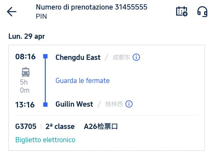 Attenzione: non vi verrà emesso un biglietto effettivo, in Cina tutto viene registrato attraverso i numeri di documento quindi userete direttamente il vostro passaporto come biglietto.