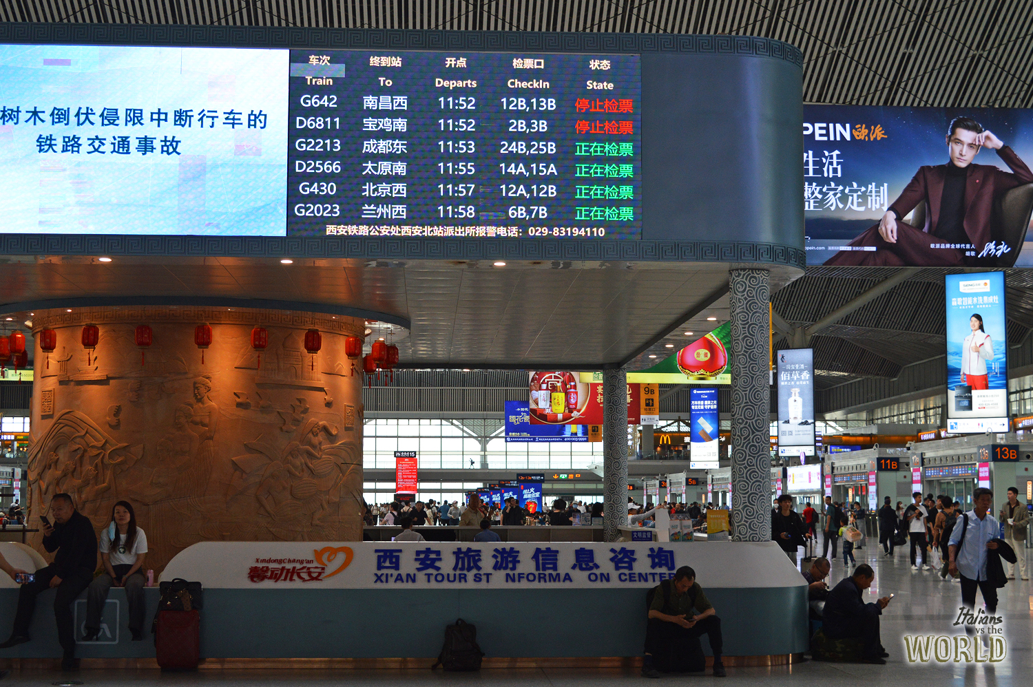 Contrariamente a quanto avevo letto in giro, nelle stazioni ferroviarie più o meno tutti conoscono un po’ di inglese, per cui nonostante non ci fosse uno sportello dedicato agli stranieri (pare ci sia a Pechino e Shanghai), siamo riusciti a prendere il nostro biglietto senza problemi.